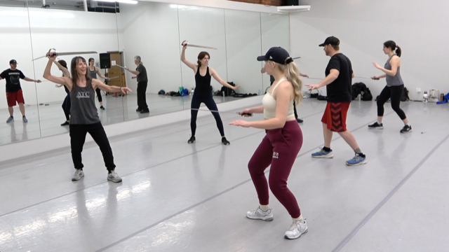 Our Tuesday class includes swordfighting, hand-to-hand combat, and rolls & falls for screen and stage.